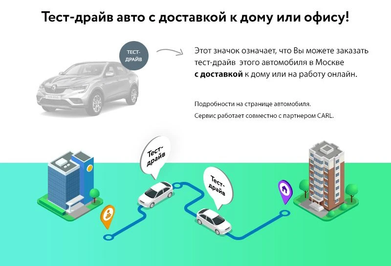 CARL — новый сервис для выбора и покупки автомобиля. Пользователь, скачав мобильное приложение, может заказать тест-драйв интересующего автомобиля в любую точку Москвы и пройти часовой тест-драйв по любому маршруту с продуктовым консультантом, который расскажет об автомобиле и не будет навязывать покупку.