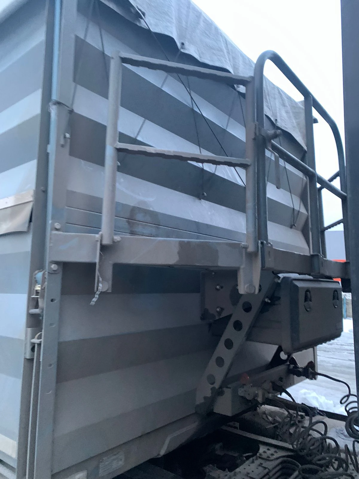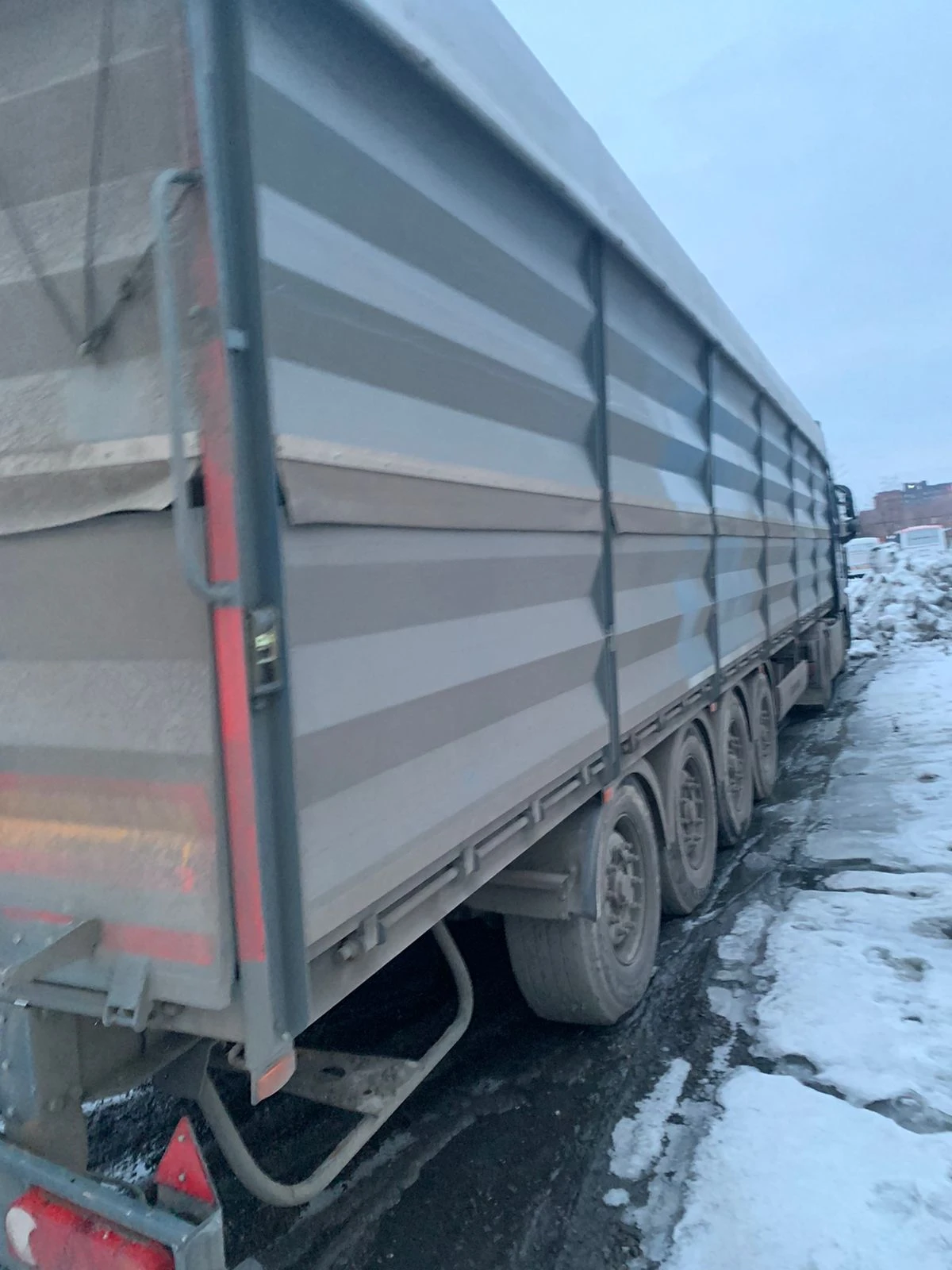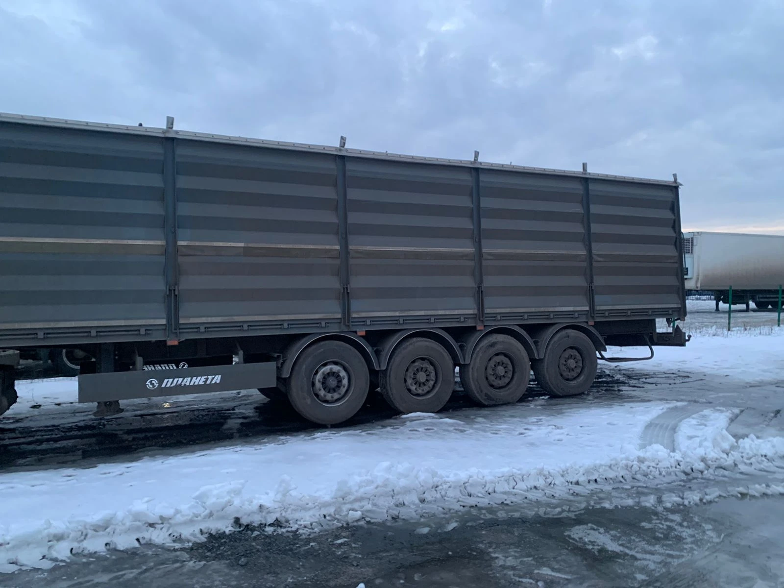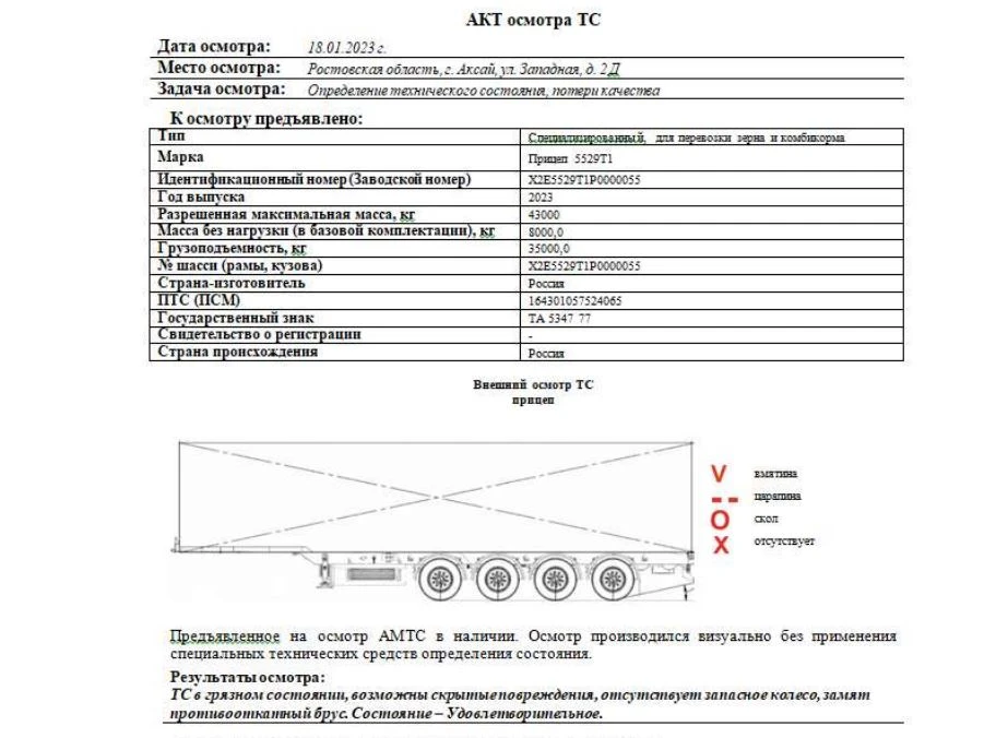 Технические характеристики контейнера для сыпучих грузов: Объем 69 м. куб. Внутренние размеры Длина 12,4м Ширина 2,41м Высота 2,2 м Толщина пола 2 мм Толщина борта 1,5 мм Инструментальный ящик 1 Тент, шт 1 Сматывающее устройство, шт 1 Балкон спереди сзади откидывающая площадка Откидные борта с двух сторон, на верхней навеске, открываются отдельно 12 Задний борт – с верхней навеской или распашные ворота 2 Высота открывного борта, мм 80 Технические характеристики: Технически допустимая максимальная масса транспортного средства, кг 42600 Вес, в базовой комплектации, кг 7600 Технически допустимая максимальная масса, приходящаяся на каждую из осей транспортного средства, начиная с передней оси, кг - на первую ось 8 000 - на вторую ось 8 000 - на третью ось 8 000 - на четвертую ось 8 000 Технически допустимая максимальная нагрузка на опорно-сцепное устройство, даН 10600 Высота ССУ (седельно-сцепного устройства), мм 1 150 - 1 250 Рама • Лонжероны двутаврового сечения; • Повышенной прочности; • Процесс сварки происходит сварочными тракторами и роботами. Шасси • 4-осное; • Оси BPW; • Максимальная масса, приходящаяся на заднюю тележку, кг –технически допустимая36 000; • Межосевое расстояние 1 310мм; • Пневматическая подвеска; • Подъёмная первая и вторая ось (в базовой комплектации) • Сцепной шкворень 2 дюйма; • Сайлентблок BPW • Ступичный узел – закрытый блок подшипник; Тормозная система • SORAL; • Тормозная система - дисковая; • Стояночная тормозная система - механический привод с пружинными энергоаккумуляторами на 3 и 4 осях или 2 и 3 осях и пневматическим ручным краном управления; • Аварийная тормозная система - механический привод с пружинными энергоаккумуляторами на 3 и 4 осях или 2 и 3 осях к тормозным механизмам колёс. Электросистема • 24В; • задние огни в комплекте с сигналом заднего хода, противотуманной фарой, указателями поворота и отражателями света; • освещение номерного знака; • габаритные огни; • Светоотражающая лента; • 2 розетки и розетка ABS. Окраска • Все стальные элементы перед окраской проходят дробеструйную обработку; • Два слоя грунта; • Антигравийная и антикоррозийная защита; • Краска: двухкомпонентная. Колеса • Диски: 11,75 х 22,5; • Ошиновка односкатная; • Количество колёс: 8+1 запасное, 385*65*22,5.