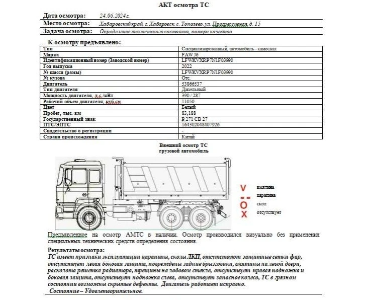 Cпециализированный, автомобиль - самосвал FAW J6