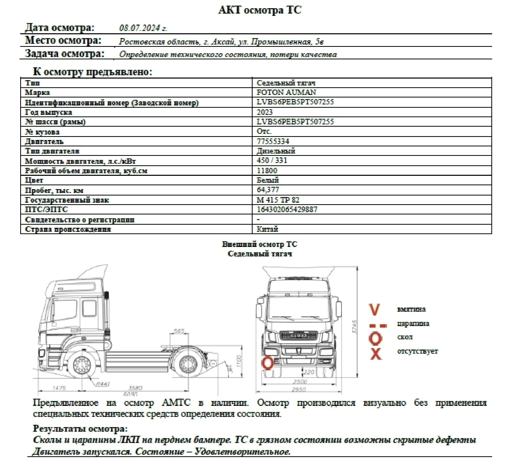 Двигатель запускался. состояние - Удовлетворительное.