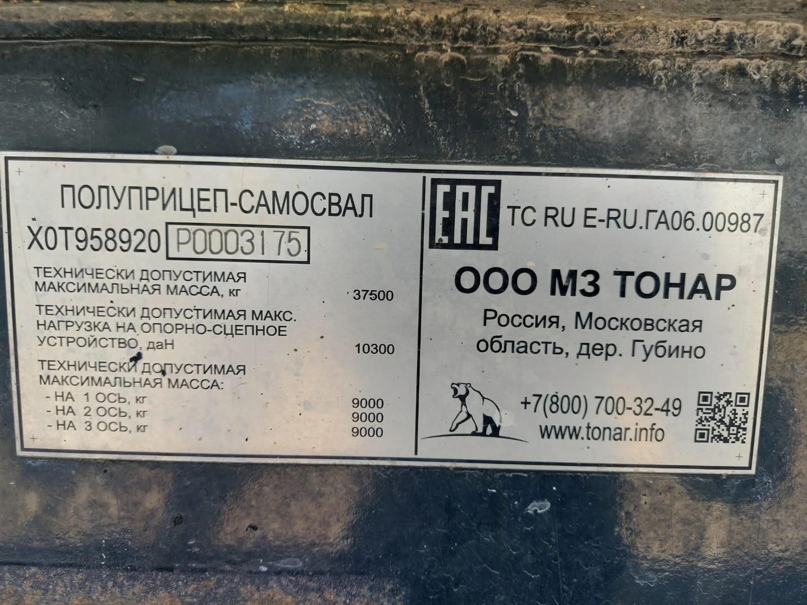 Специализированный, полуприцеп-самосвал ТОНАР 9595