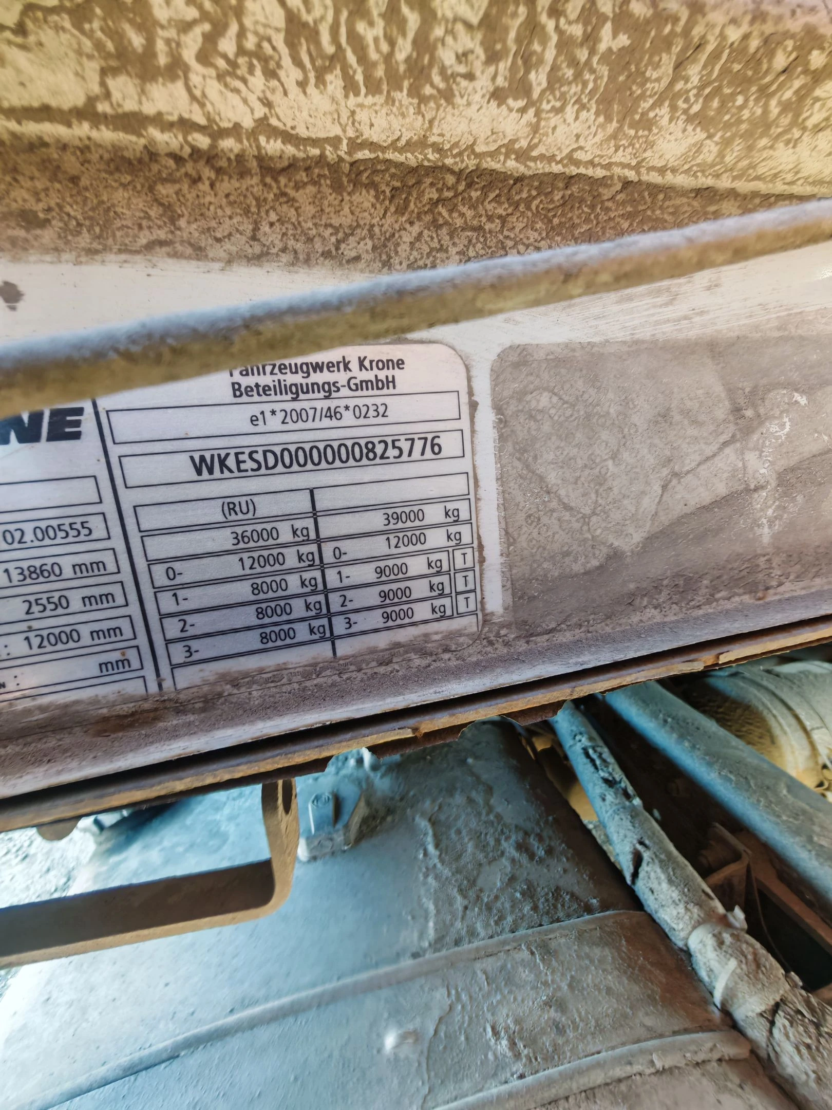 Полуприцеп Зав. № машины (VIN) WKESD000000825776 Марка KRONE SD Год вып. 2018 Грузоподъемность, кг 32450 Пробег, тыс. км. 358,630*=55 х 6,52 (где 55 000 – среднегодовой пробег; 6,52- хронологический возраст ) Цвет серый Технически допустимая максимальная масса, кг 39 000 Масса в снаряженном состоянии, кг 6 550 Страна-производитель Германия ПТС (ПСМ) 77 УО 838031