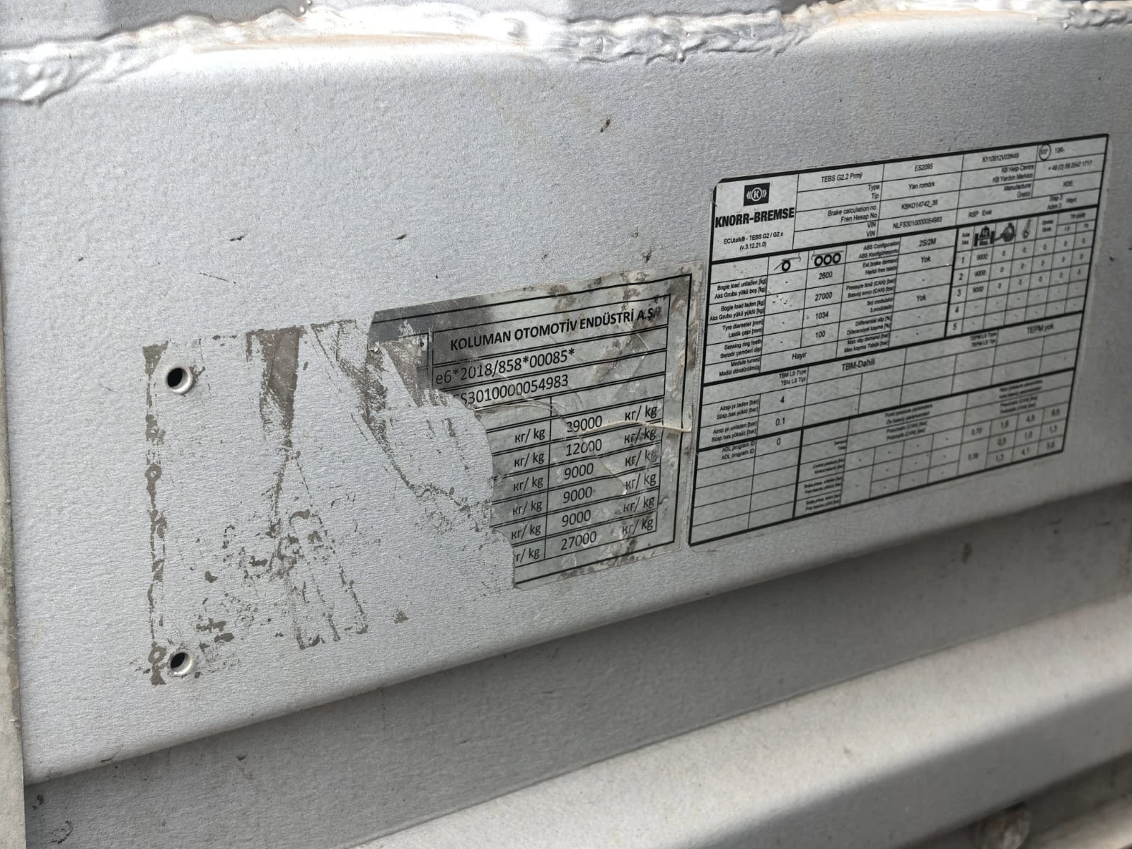 Наименование Прицеп KOLUMAN S - (грузовой) Марка KOLUMAN Модель S Год выпуска 2021 Идентификационный номер (VIN) NLFS3010000054983 Местонахождение Нижегородская область, г. Дзержинск, ул. Лермонтова, д. 20 Цвет кузова (кабина, прицеп) Серый Технически допустимая максимальная масса 21 000 Изготовитель ТС (страна) Koluman Otomotiv End_stri A.S. Первоначальная балансовая стоимость, руб. 2 403 571,59 Балансовая стоимость, руб. 774 601,45 Техническое состояние Удовлетворительное Срок реализации объекта оценки по рыночной стоимости, мес. 5 Срок реализации объекта оценки по ликвидационной стоимости, мес. 4 Спецификация шторно-бортового с закладными полуприцепа KOLUMAN – 2021 г. • Размеры и вес • длина кузова внутри около 13.620 общий вес (доп/техн) 35.000/39.000 • ширина кузова внутри около 2.480 полезная нагрузка (доп/техн) 27.920/31.920 • высота передней стенки около 3.880 нагрузка на оси (доп/техн) 24.000/27.000 • высота кузова спереди внутри около 2.770 нагрузка на седло (доп/техн) 11.000/15.000 • высота кузова внутри около 2.770 общий собственный вес +/-3% 6.900 • высота бокового проема впереди около 2.620 высота седла без груза около 1.110 • высота бокового проема сзади около 2.620 высота седла с грузом около 1.080-1.230 • общая высота впереди без груза около 4.000 высота подвески 260 • общая высота сзади без груза около 4.000 колесная база 7.700 • высота погрузки сзади без груза около 1.150 высота проема задней двери около 2.705 • размер шин 385/65R22.5 ширина проема задней двери около 2.480 • Шасси • Производство – Koluman Otomotiv Endustri A.S. Мерсин Тарсус, Турция • Сварное шaсси изготовлено из стали ST52-3 (высокопрочная), оцинкованное • Межосевое расстояние 1310/1310 мм • Корзинa для 2 зaпaсных колес, нa болтaх • Фиксированный задний бампер и откидные боковые бамперы согласно директиве 70/221/ЕЭС • Сцепной шкворень 2" по стандарту SАЕ • Оси SAF Intradisc 3x9 тонные, пневмоподвеска, дисковые тормоза • Тормозная система • Двухконтурная системa Knorr Bremse/WABCO с пневмоприводом согл. RR ЕG 71/320 • ЕBS 2S/2М, с программой предотвращения опрокидывания, • электропитание ЕBS согласно ISО 7638 + CАN • энергоаккумулятор с двойной мембраной, 2 противооткaтных упорa с креплением • Опорный домкрат 24-тонный марки SAF/OMS, двухскоростной • Система освещения • Aspock/Hella - 24V по ЕСЕ R48 мносекционные фонари, • двa 7-полюсных разъема - 1хISО3731 /1хISO1185 и один 15-полюсный рaзъем DIN ISО12098 • светодиодные боковые и задние фонари • Кузов и крыша • Тентованный, с тремя стальными сдвижными съемными стойками с каждой стороны • 2 стaльные угловые стойки у ворот с устройством нaтяжения сдвижного тентa • 8 единиц алюминиевых бортов высотой 600 мм • Панельного типа алюминиевые ворота с системой скрытых замков • Стальная передняя стенка со стальными угловыми стойками • Сдвижная крыша Edsсha, профиль 175мм, ширина внутри 2470 мм • Пол • Многослойная клеевая фанера мультиплекс толщиной 30мм с покрытием смолы, • с нагрузкой для вилочных погрузчиков 7.200 кг (соответствует требованиям EN 283). • Пол с двумя рядами отверстий под кониками (2*8) • Наличие системы крепления груза, 24 кольца (2*12) для стяжных ремней. • Тент • Сдвигаемые боковые шторы, плотность 650 гр/м2 • Тент крыши, плотность 650 гр/м2 • Пломбировочный трос • Колеса и шины • Шины на выбор KOLUMAN (КАМА/ПЕРЕЛЛИ) • 6 шин 385/65R22.5 (11.75х22.5) / 6 стальные диски • Колёсные гайки окрашены покрытием GEOMET • Четверть пластмассовые крылья • Прочее оборудование шасси • 2 резиновых угловых отбойника сзади • 8 шт крепежных п