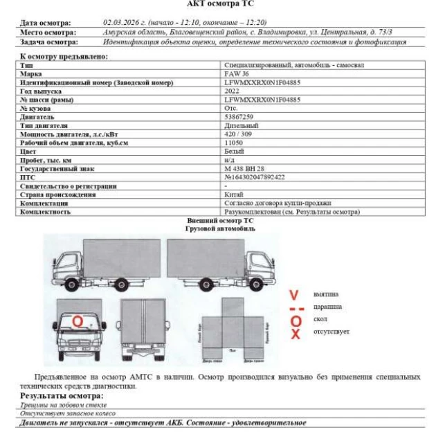 Специализированный, автомобиль - самосвал FAW J6