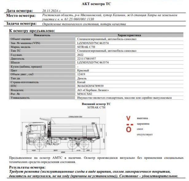 Специализированный, автомобиль-самосвал SITRAK C7H