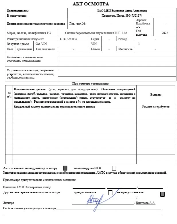Наименование Сцепка бороновальная двухследная СШГ -12А Модель СШГ -12А Год выпуска 2022 Идентификационный номер (VIN) 1 Местонахождение Волгоградская область г. Волгоград, ул. Промысловая, д. 28 Цвет кузова Синий Изготовитель ТС (страна) ООО "ЮЖНЫЙ ВЕТЕР ", Россия