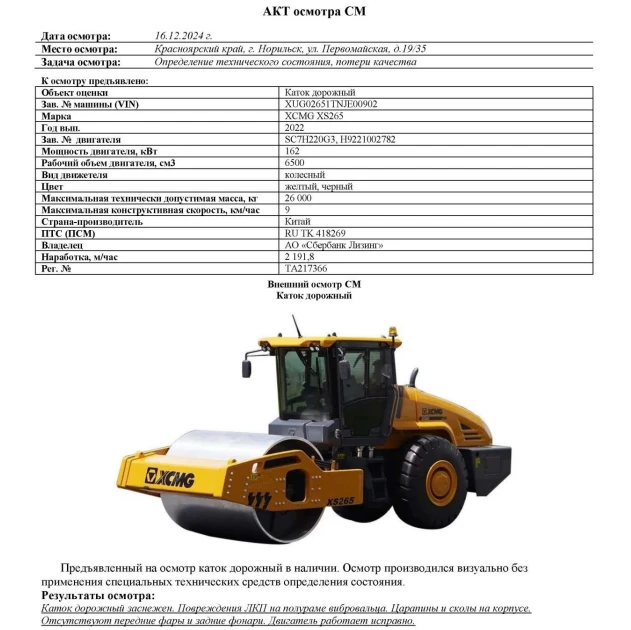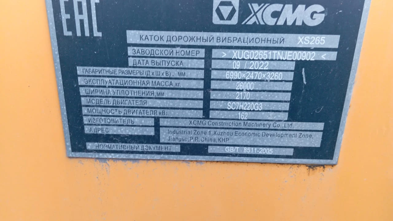 Каток дорожный XCMG XS265