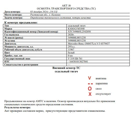Тягач Зав. № машины (VIN) XTC549005L2542050 Марка, модель КАМАЗ М1840 Тип ТС Грузовой Год вып. 2020 Двигатель 0379437 Шасси XTC549005L2542050 Кузов (кабина, прицеп) 549000L0031238 Цвет Белый Мощность, кВт 400 Объем двиг., см3 11967 Тип дв. Дизельный Тип кузова Спецтехника КПП МКПП Разрешенная максимальная масса, кг 18600 Масса без нагрузки, кг 7805 Грузоподъемность, т. 10795 Страна-производитель Россия Страна-изготовитель Россия ПТС №164301013027041
