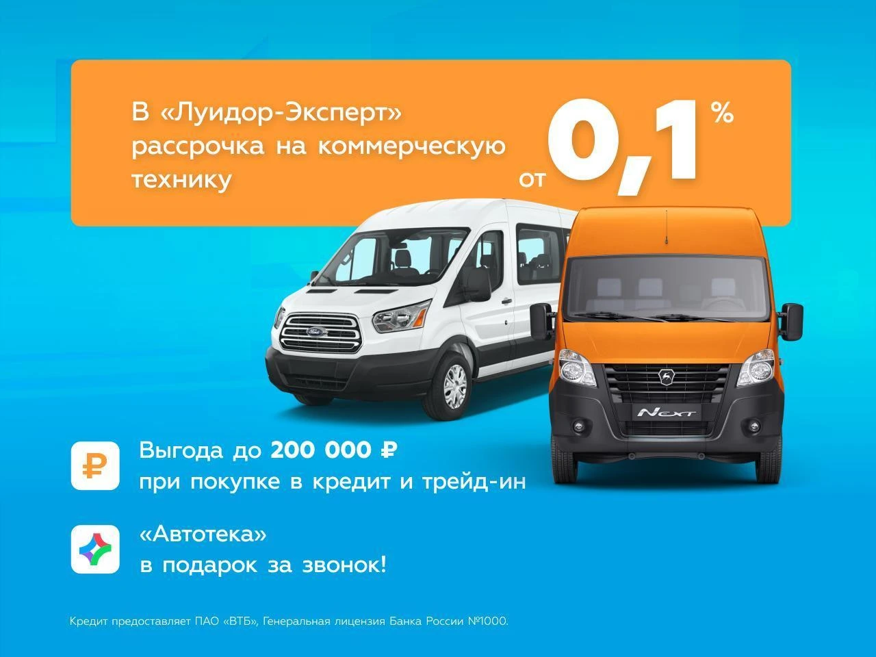Кредит предоставляет банк ПАО "ВТБ", генеральная лицензия Банка России №1000. Банк вправе отказать в выдаче кредита без объяснения причин. Срок акции с 01.08.2024 по 31.08.2024г. Не является публичной офертой.